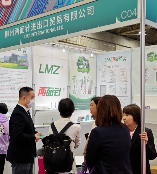 疫情過(guò)后,為進(jìn)一步加強(qiáng)開(kāi)放合作,挖掘RCEP市場(chǎng)貿(mào)易潛力,加深與日本的經(jīng)貿(mào)往來(lái),由自治區(qū)商務(wù)廳組織的“2023年中國(guó)廣西商品博覽會(huì)暨‘桂品’出海日本站”于8月30日至9月1日在日本大阪INTEX展覽中心1號(hào)館舉辦。繼2019年首次參加同類(lèi)型博覽會(huì)后,自治區(qū)商務(wù)廳再次點(diǎn)名邀請(qǐng)兩面針公司參展。為此,公司副總裁楊玲率進(jìn)出口公司業(yè)務(wù)團(tuán)隊(duì)攜公司系列產(chǎn)品應(yīng)邀參加了本次博覽會(huì),并出席了開(kāi)幕式等重要配套活動(dòng)。